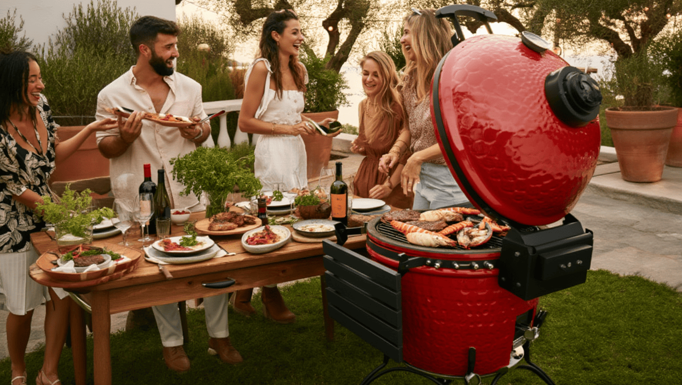 На DinoEgg легко реализуются любые техники: стейки с корочкой на прямом жаре, ребра low&slow с дымом от щепы, пицца на камне, хлеб или овощи в косвенном режиме. С вставкой для казана — аутентичный плов, шурпа или томленое мясо; с воком — быстрые азиатские блюда с сохранением сочности. Керамика не пересушивает продукты, добавляя естественный дымный аромат.